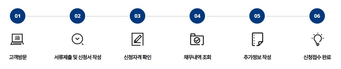 → 신분증, 소득증빙자료, 채무내역서 등 준비 필요